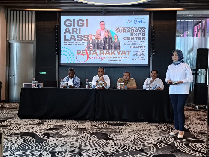 “Kegiatan yang digelar ini dalam rangka memperingati Hari Radio Nasional dan merupakan gebyar Bintang Radio yakni audisi pencarian bakat dalam bernyanyi yang menjadi agenda rutinitas RRI setiap tahun,” ujar Direktur Utama Lembaga Penyiaran Publik (LPP) Radio Republik Indonesia (RRI) Hendrasmo pada saat konferensi pers di Surabaya, Senin (23/9/2024).