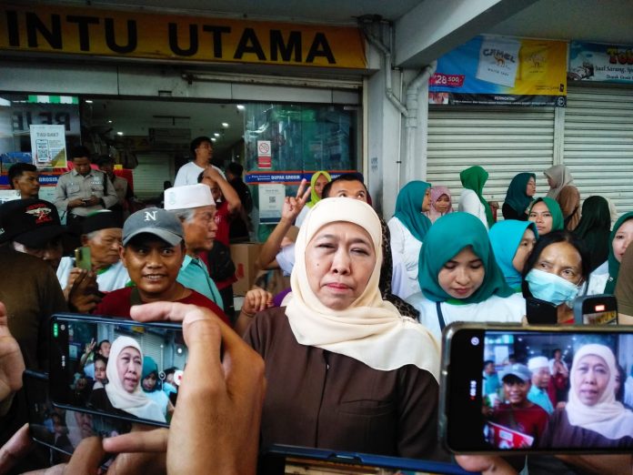 Foto: Cagub Jatim 2024, nomor urut dua, Khofifah Indar Parawansa di Dupak Grosir Surabaya.