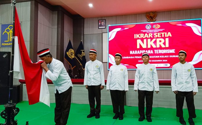 “Tahun ini total sudah ada 14 orang napiter dari Lapas I Surabaya yang menyatakan ikrar setia kepada NKRI,” ujar Kadiv Pemasyarakatan Kanwil Kemenkumham Jatim, Heri Azhari, Selasa (31/12/2024).