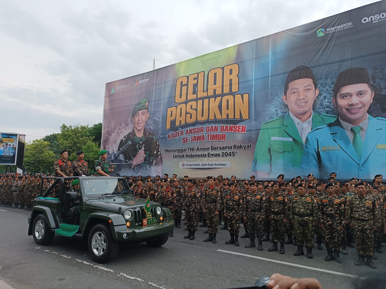 Sebelumnya, sebanyak 20 ribu kader Ansor NU se- Jawa Timur akan mengikuti gelar pasukan apel bersama TNI di JX Internasional Surabaya pada Minggu, 13 April 2025. Kegiatan ini bagian dari rangkaian Syawal Fest sekaligus pelantikan Pimpinan Wilayah GP Ansor Jatim periode 2024–2028.